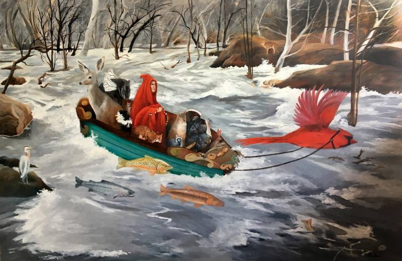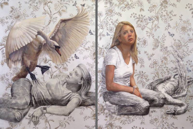 Dr. McAra selected three works for awards including a 1st place award of $2000 to Jill Eberle of New Bern, North Carolina for a diptych mixed-media painting titled “Not This Time”, a 2nd place award of $1000 was chosen for Kelsey Ashe of White Gum Valley Australia for her film, “Pearls and Blackbirds” and a 3rd place award of $500.00 to Rose Moon of Sedona, AZ for her painting “The Flooding of Oak Creek.”