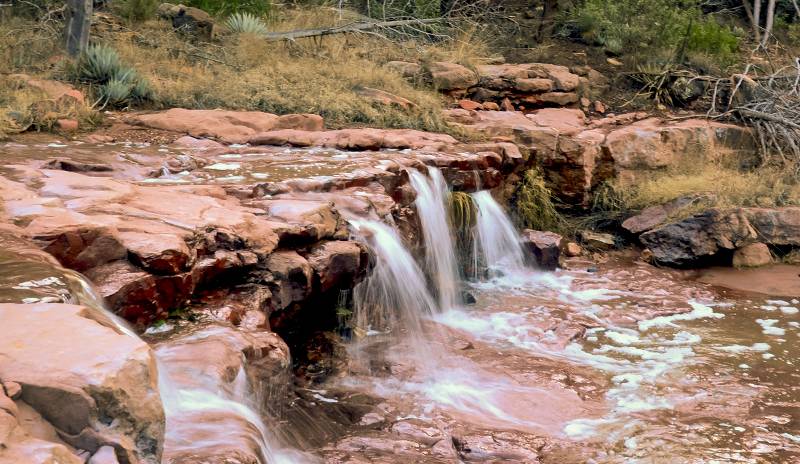 Munds Wagon skirts the base of the Cow Pies formation, and 3 miles from the trailhead, you’ll reach the junction of Munds Wagon and Cow Pies Trail. Continue on Munds Wagon and cross Schnebly Hill Road a third time. The trail makes a steeper climb at this point and winds up at Merry-Go-Round Rock 3.5 miles from where you started. At the base of Merry-Go-Round, we were greeted by another cascading waterfall. Munds Wagon continues another half a mile past Merry-Go-Round, but the views were so pretty (and the temperatures so chilly) that we decided to end our hike there. Was our 7-mile hike through a pop-up oasis an exception to the rule? Most likely, but it’s a beautiful area no matter the conditions. And if you’re lucky enough to have some spare time after the next big rainstorm, we would highly recommend making a beeline for Munds Wagon Trail. That’s when a picturesque hike turns into a legendary one.