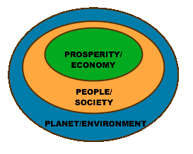 It's certainly true that our society is wholly dependent upon nature, our economy is a "wholly-owned subsidiary of Nature," as Ray Anderson, the visionary owner of Interface, liked to say. It's probably most accurate to see these as concentric circles, with Environment the largest, then Society and then our Economy as a subset of our society.