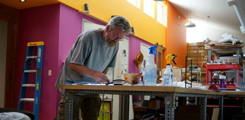 Being an artist runs like blood through his veins. His grandfather was a talented wood worker who built pews for churches in Norway and would hike through the countryside sketching plein air. His dad was a technical illustrator and had him drawing at a young age. Israelson thought he would be an illustrator and follow in his dad’s footsteps but in college he discovered a love affair with wood working that he would hone over time.