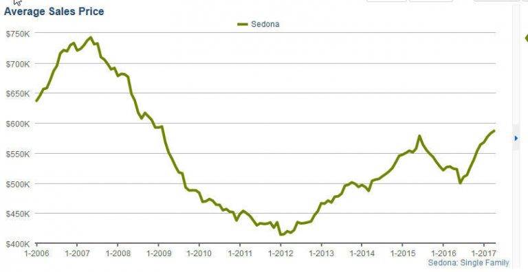 Around this time last year the market started to grow. Sedona homes have had a 12% sales price increase on homes. Looking at the graph, I’d expect continued growth.